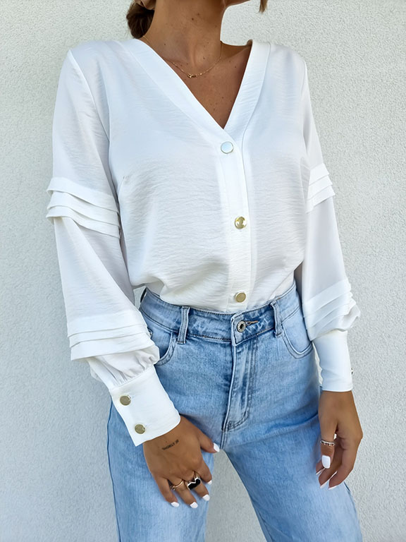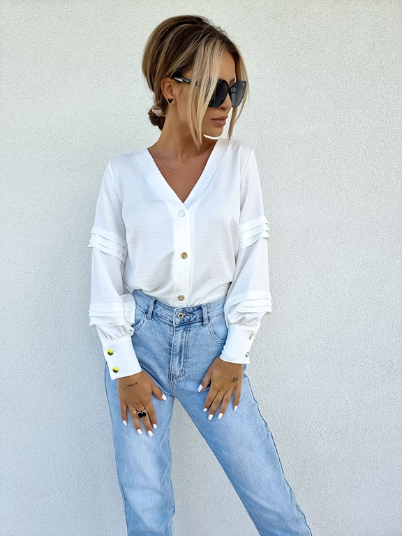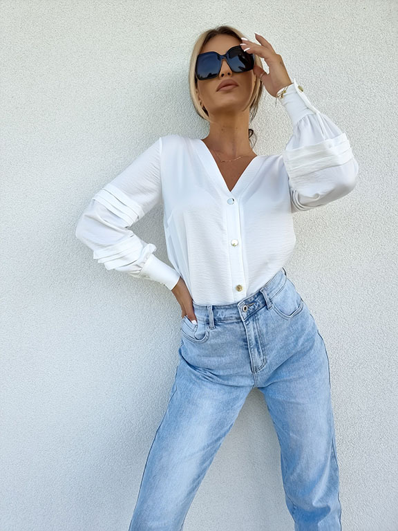 Elegancka bluzka ze złotymi ozdobnymi guziczkami.