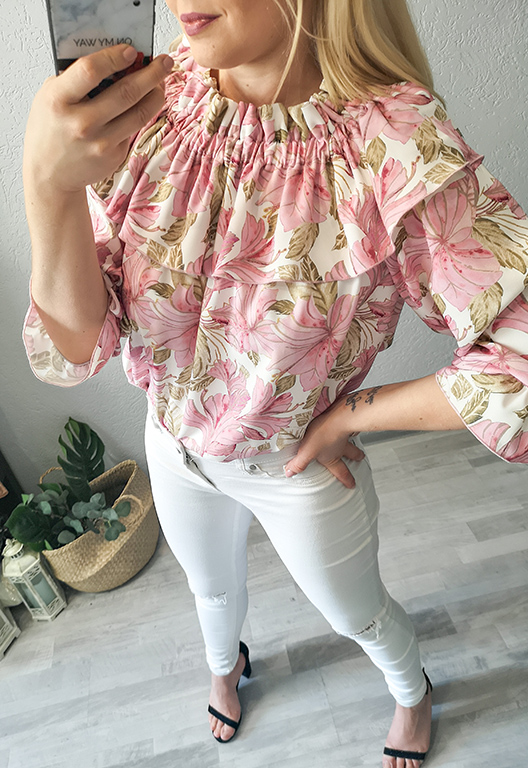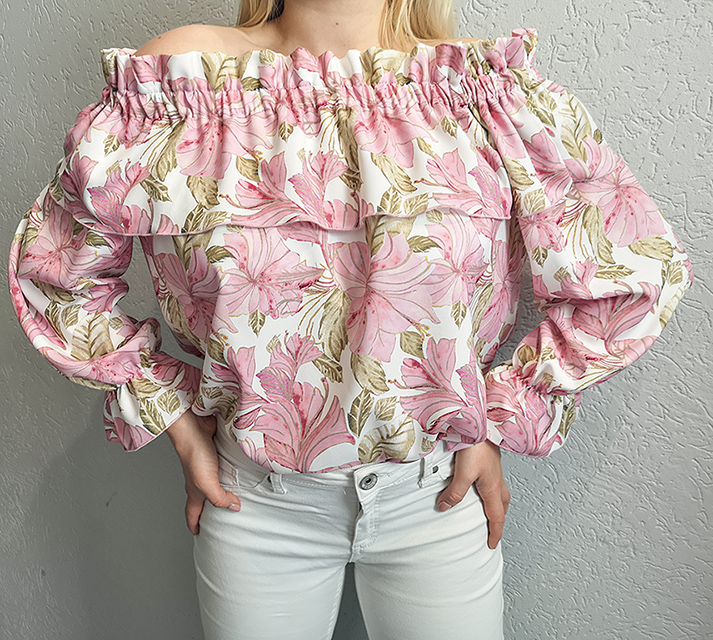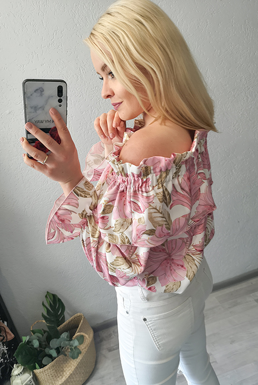 Zwiewna bluzka typ hiszpanka o pięknym, kwiatowym wzorze.