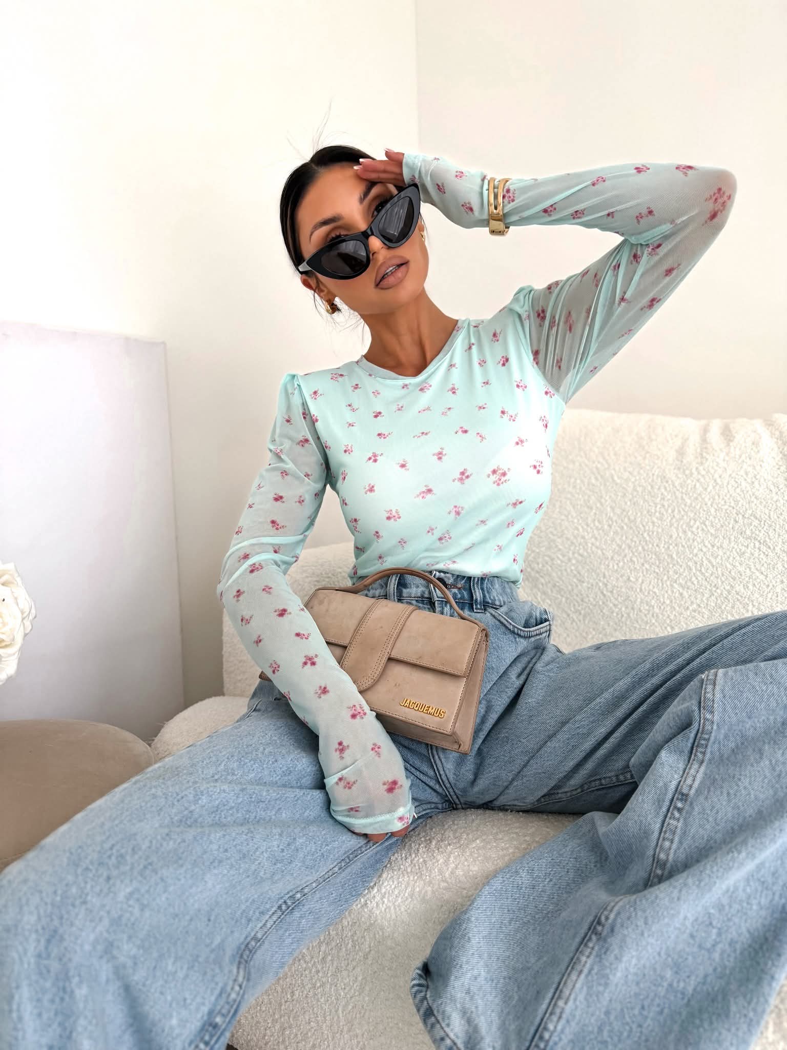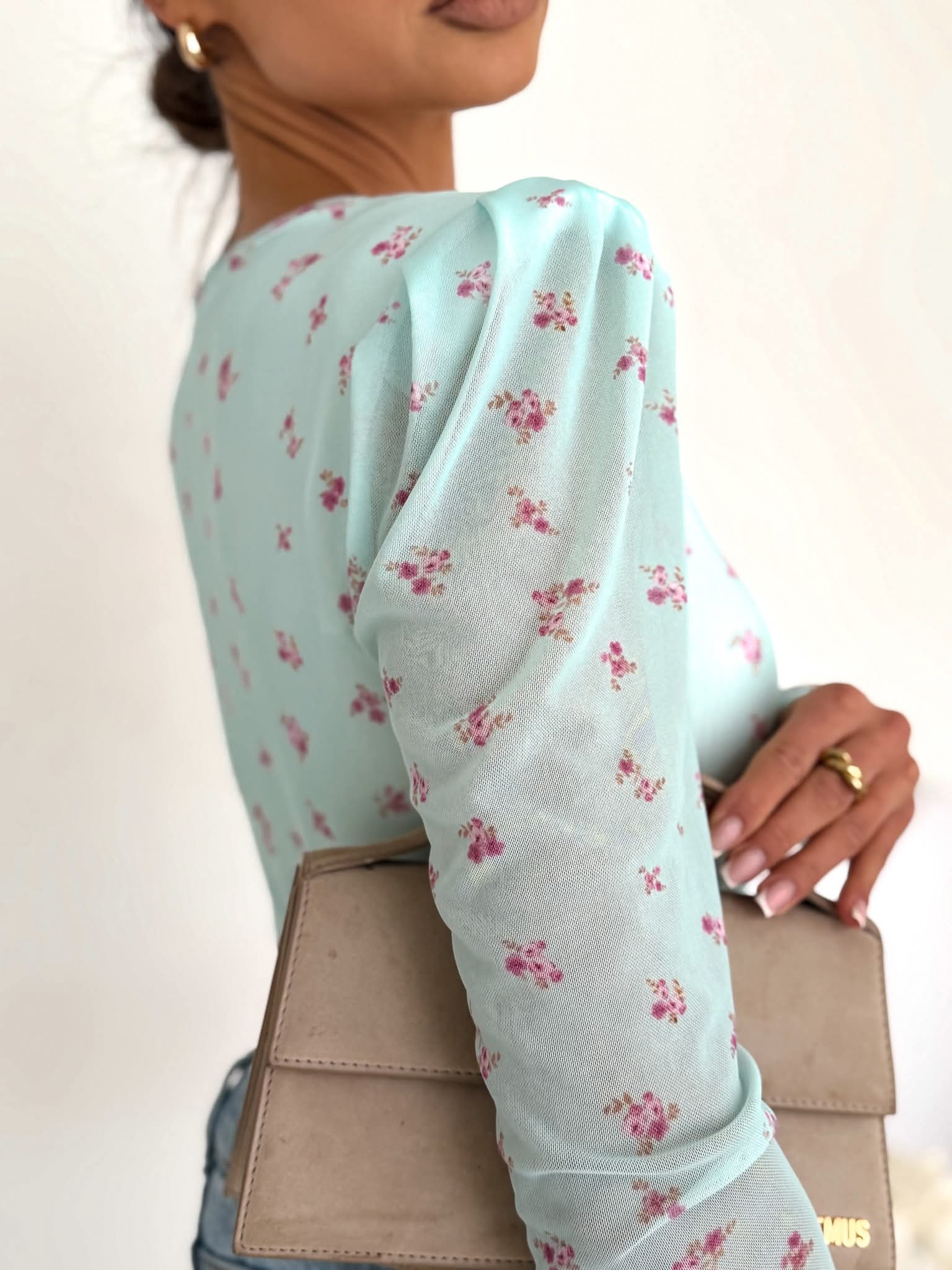 Bluzka Siatka Emilie Kwiaty Miętowa