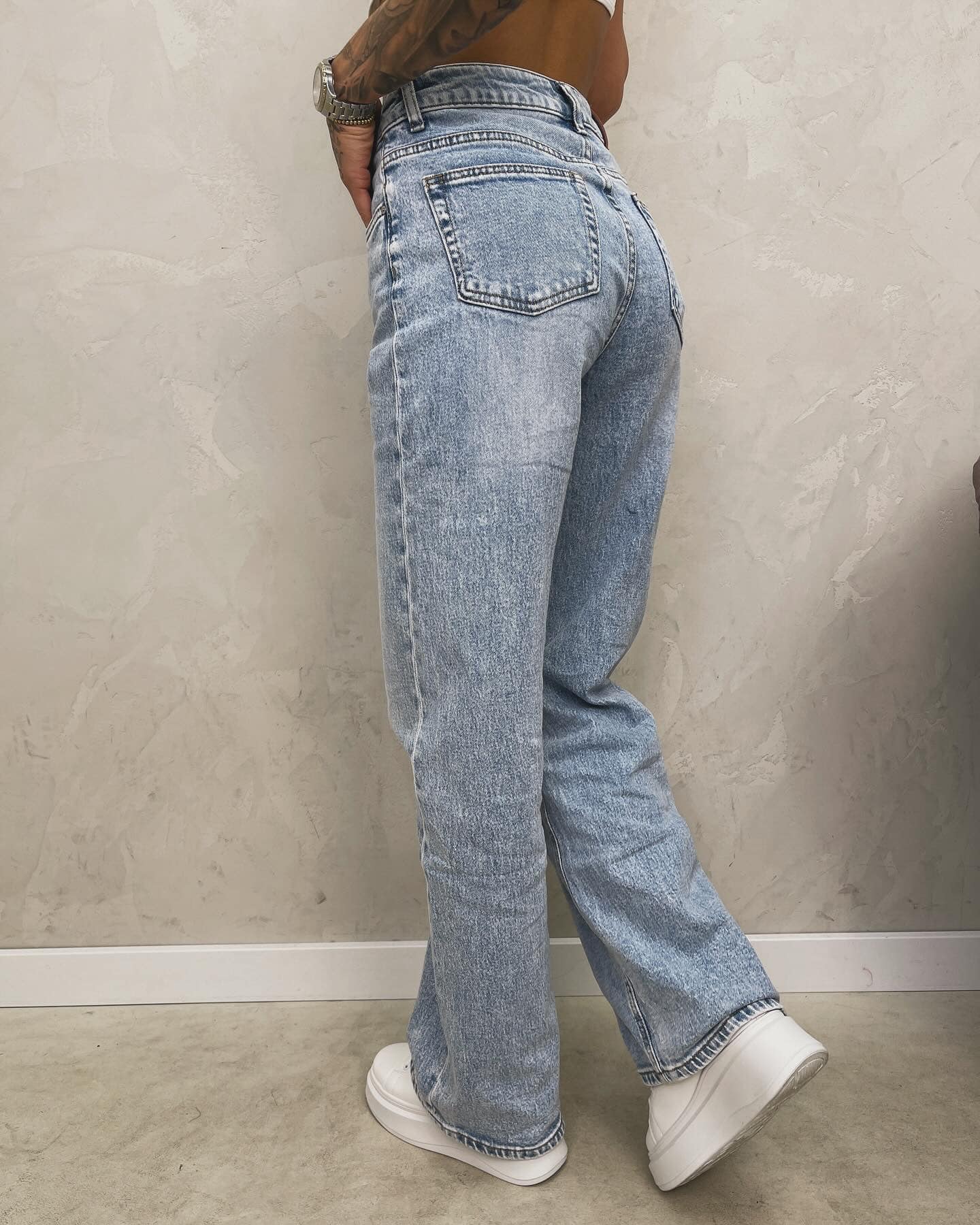 Jeansy z prostą nogawką w kolorze niebieskim.