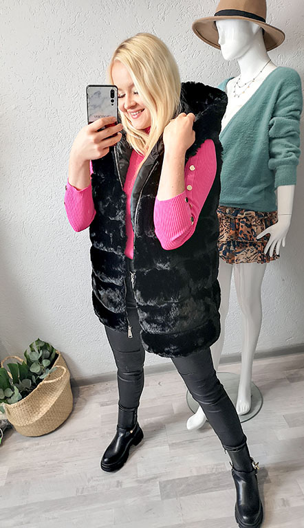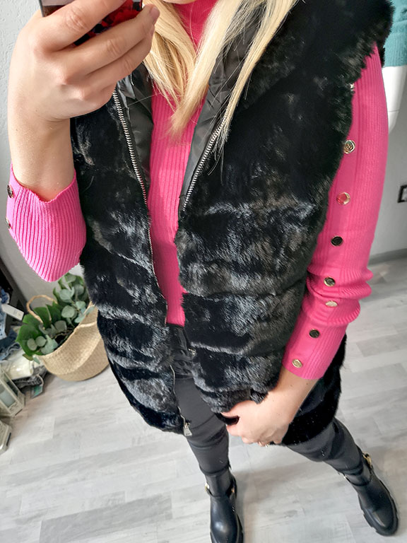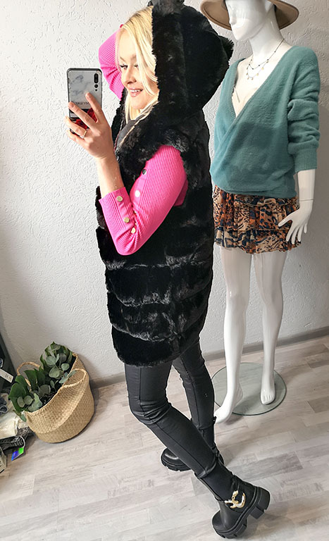 Rewelacyjna kamizelka futrzana w kolorze czarnym.