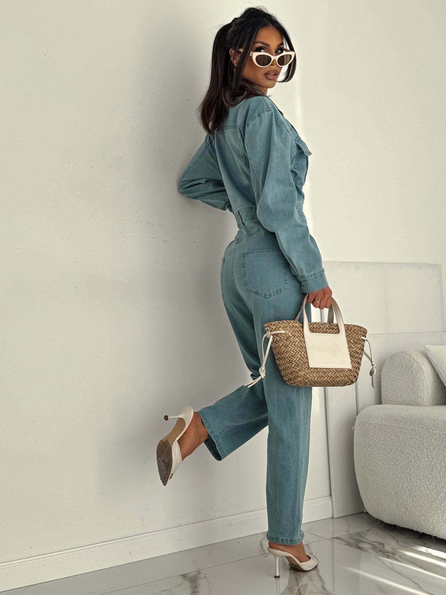 Model pięknie podkreśla talię, a klasyczny denim nadaje całości modowego charakteru. Idealny wybór na co dzień i na bardziej eleganckie stylizacje - świetnie wygląda zarówno ze szpilkami, jak i sneakersami.