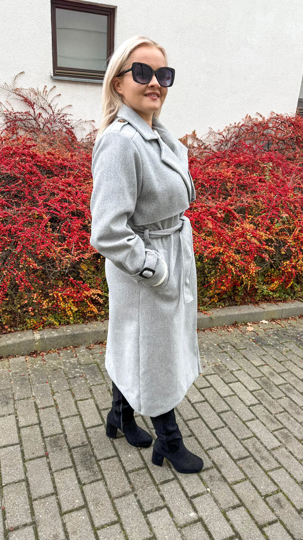 Płaszcz Długi Elegancki Damski Szary
