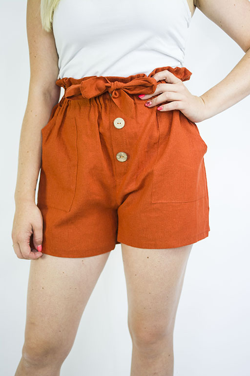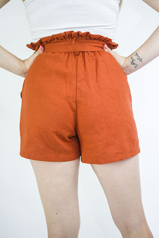 Rewelacyjne lniane spodenki w pięknym kolorze ceglanej czerwieni.