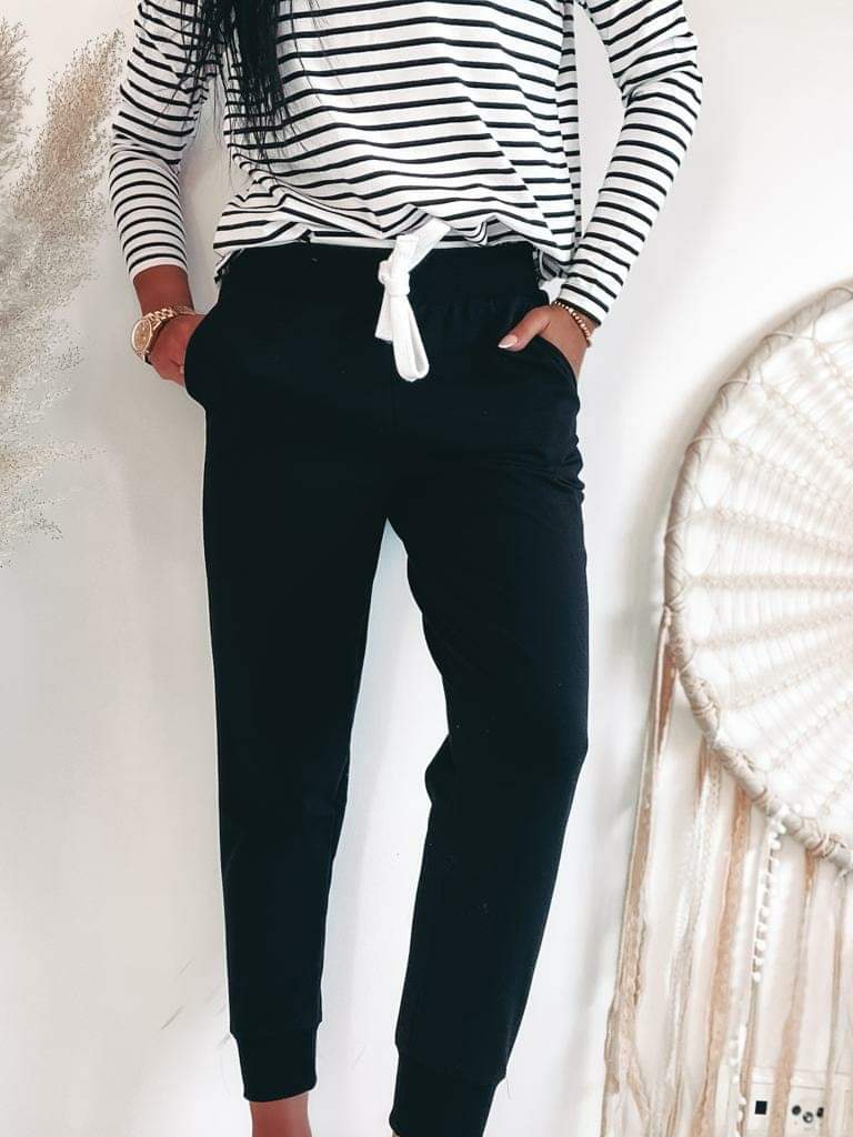 Dwie kieszenie po bokach, gumka w pasie oraz wykończenie nogawki dzięki czemu spodnie fajnie układają się na nodze.