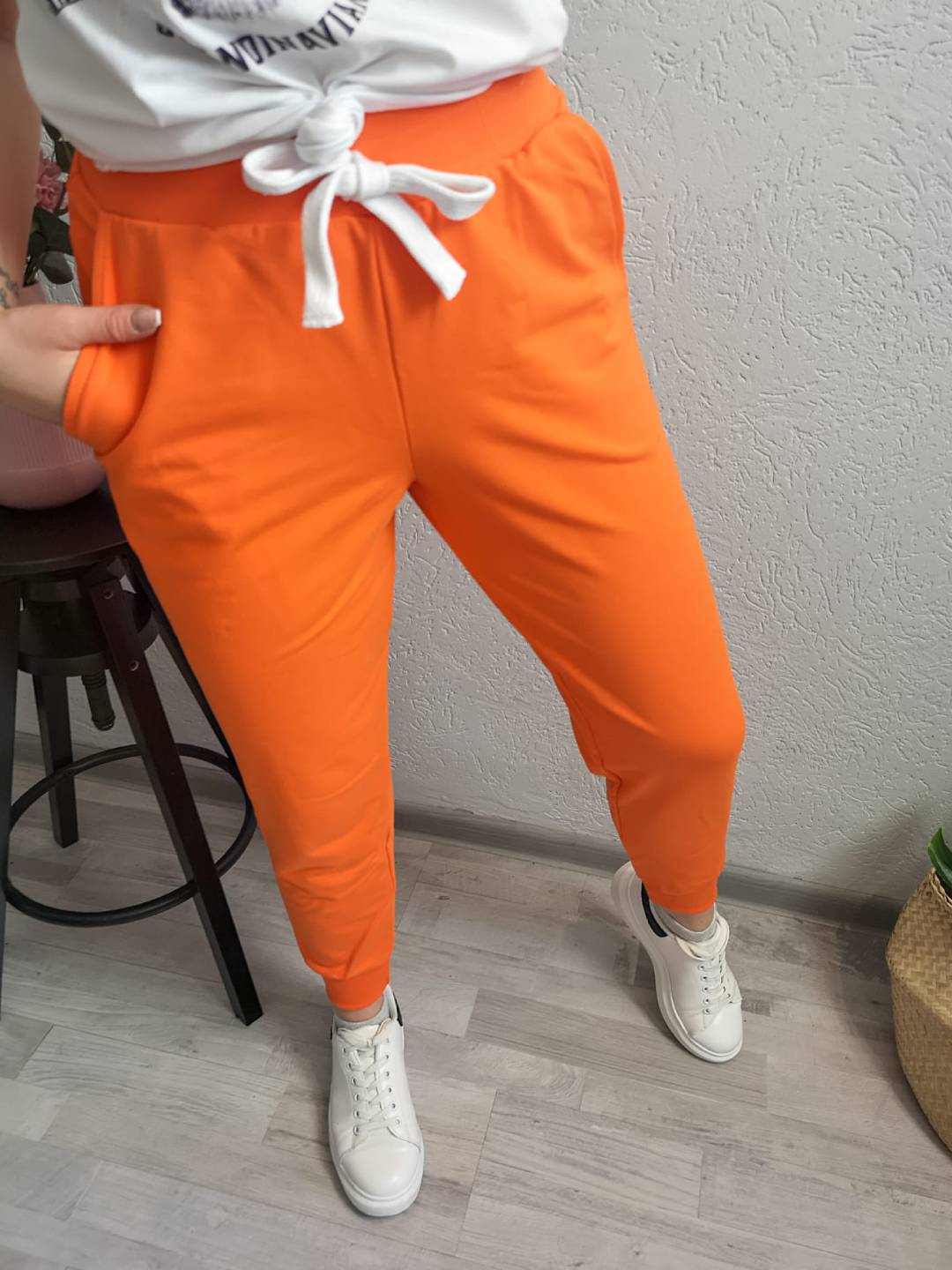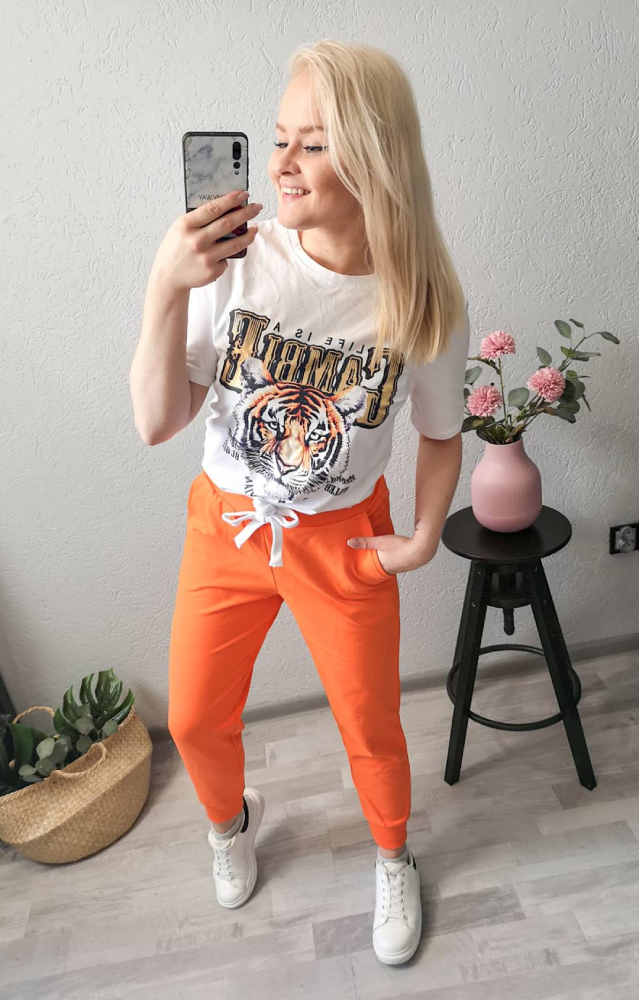 Spodnie dresowe od polskiego producenta w kolorze pomarańczowym.