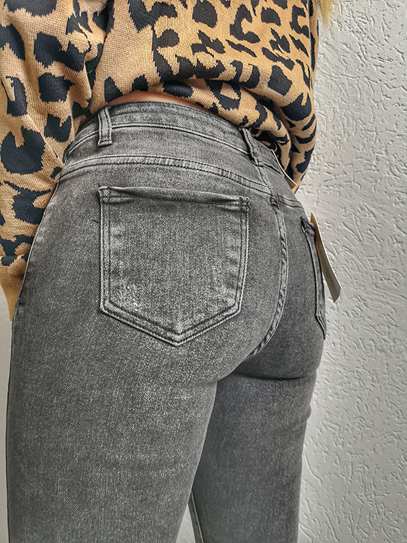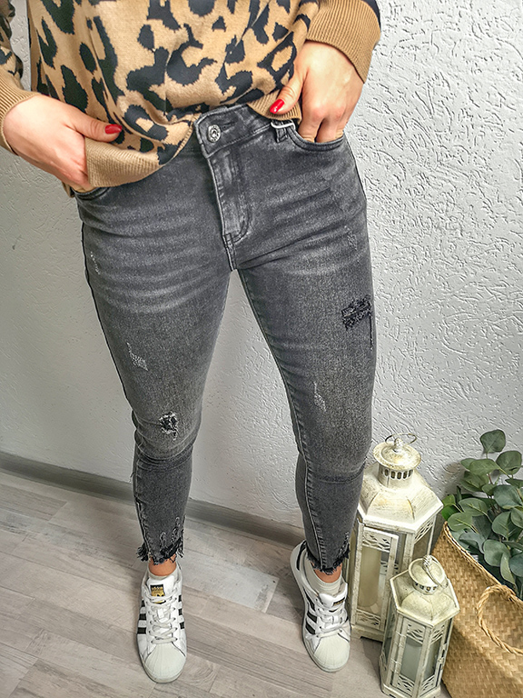 Modne przetarcia z przodu, zamki z boku nogawek, które dodają szyku i ekstrawagancji.