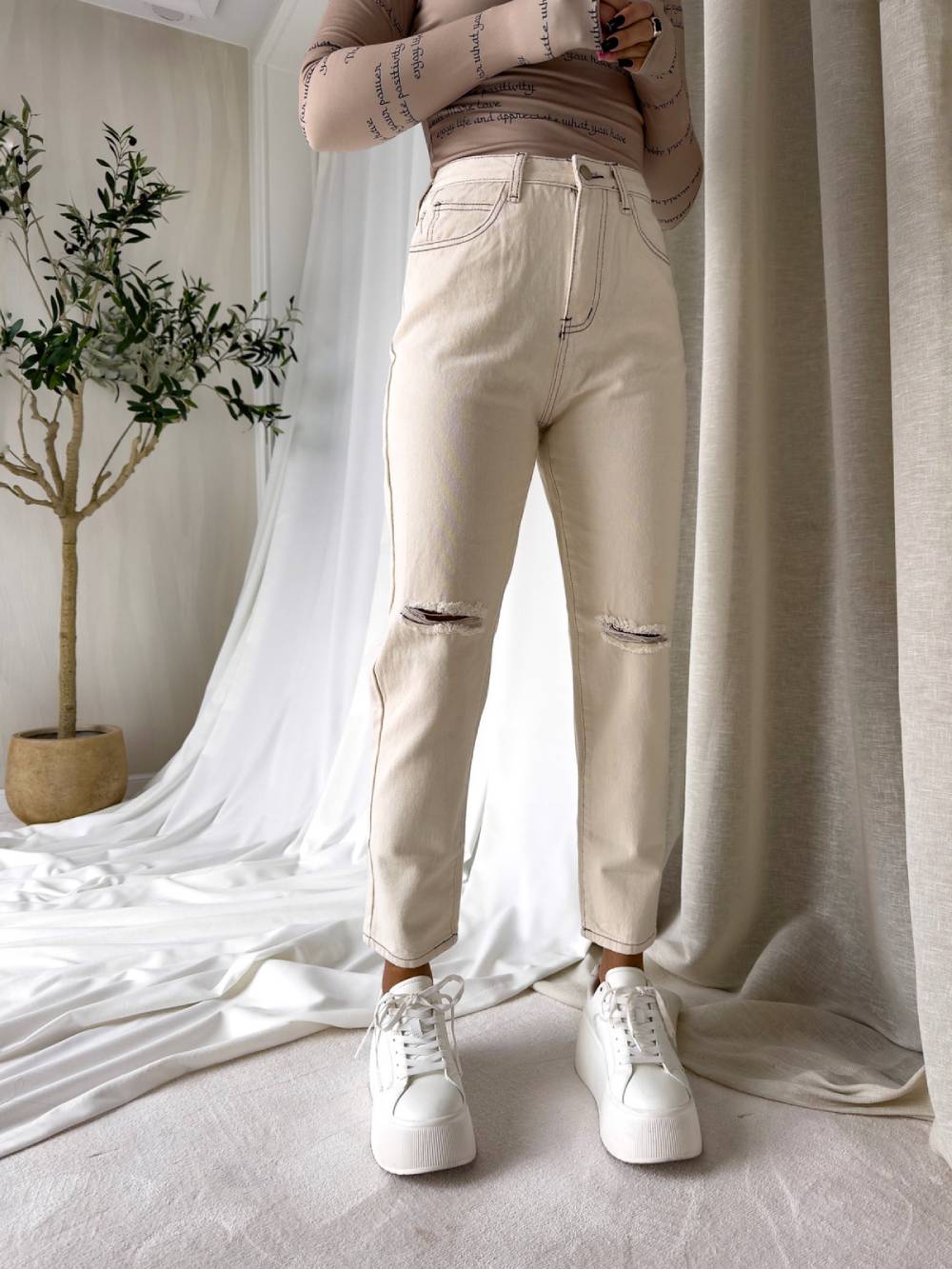 Spodnie mom fit od polskiego producenta By Me.