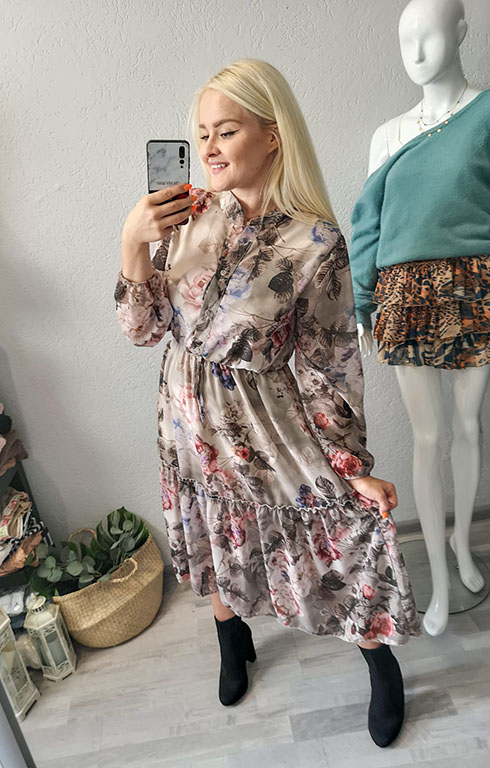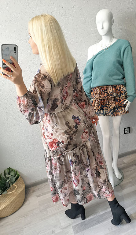 Sukienka midi o zjawiskowym kwiatowym princie.