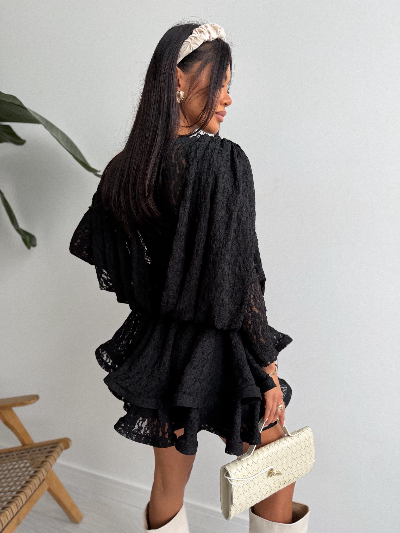Zwiewny krój z falbanami oraz subtelna transparentność nadają całości wyjątkowo kobiecego i zmysłowego charakteru, idealnego na wieczorne wyjścia i specjalne okazje.