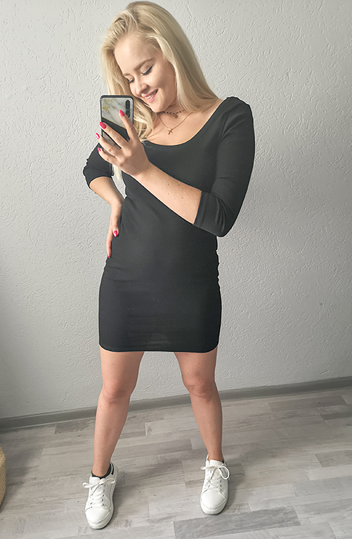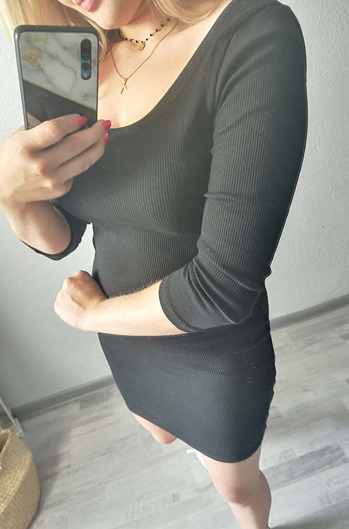 Sukienka wykonana z prążkowanego materiału.