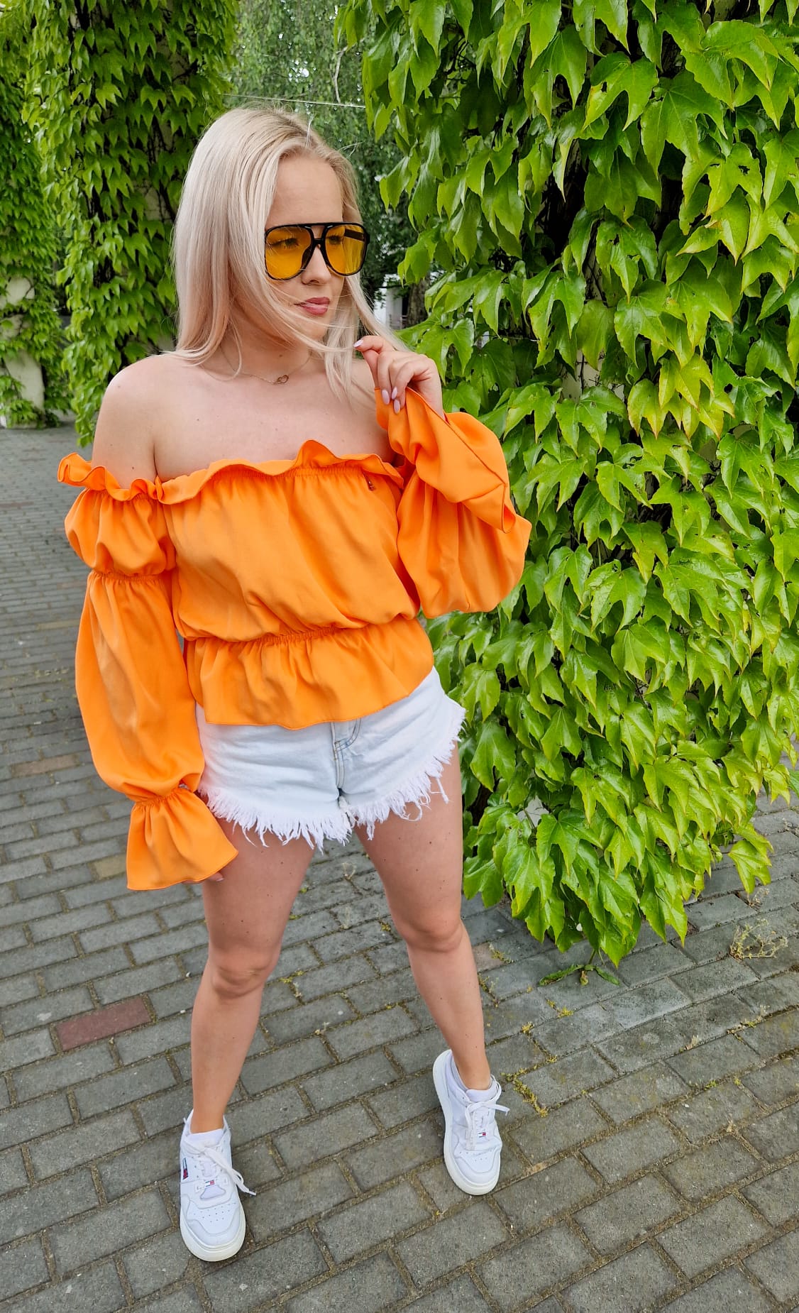 Top Hipszanka Falbanki Pomarańczowy